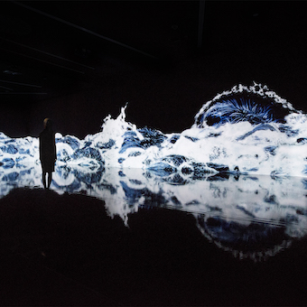 This music was made for the installation'Black Waves'.The movement of waves in water is simulated in a computer-generated three-dimensional space. The water is expressed as a continuous body after calculating the interactions of hundreds of thousands of particles. To visualize the waves, the behavior of the particles on the water was then extracted and lines were drawn in relation to the movement of the particles. The wave created in a 3-D virtual space is then turned into an artwork in accordance with what teamLab refers to as ultrasubjective space.In premodern Japanese painting, oceans, rivers, and other bodies of water were expressed as a series of lines. These lines give the impression of life, as though water was a living entity.This form of expression leads us to question why premodern people sensed life in rivers and oceans. Also, why did they behave as if they themselves were a part of nature? Perhaps something can be discovered by fusing the fixed objective world of today's common knowledge with the subjective world of premodern people.While viewing this artwork, if we feel a sense of life in the collection of lines-what can be called the subjective world of premodern people-then perhaps this is one aspect of objective recognition.When viewing this artwork, as opposed to watching waves shot with a video camera, people may feel that the barrier between themselves and the waves disappears. They feel immersed in the work, perhaps even feeling life in the collection of lines, as if the waves are luring them in. Perhaps we can find a connection to the way premodern Japanese people perceived the world and consequently behaved toward the world.If we regard ourselves as a part of nature, and consider nature not just as something to be observed, we might join premodern people in perceiving rivers and oceans as living entities. This is a way of seeing the world that lures us in and allows us to feel that there is no boundary between ourselves and nature.