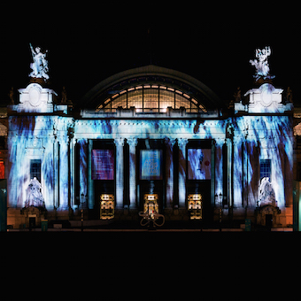 This music was made for the installation'Universe of Water Particles on the Grand Palais'.Projection mapping of a waterfall simulation onto the Grand Palais. The simulation of the waterfall was created by calculating the movement of water as it was allowed to fall on a 3-D model of the Grand Palais in a virtual 3-D space.The water is expressed as continuum of hundreds of thousand of water particles that flow in accordance with how the computer calculates the interaction of the particles. Lines are then drawn over the particles to express the waterfall. The waterfall video artwork consists of a 3-D waterfall created in a 3-D virtual space in accordance with what we call ‘Ultra Subjective Space’.